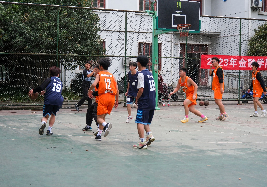 随着裁判的一声哨响,比赛开始。管工2202班率先打开局面,19号黄乐谦一记漂亮的三分打开得分账户。金融2202班不甘示弱,四名球员进球得分。第一节结束8:12,管工2202班暂时领先。第二节开打金融2202班率先发难,15号陈海滨开场16秒打出2+1吹响反击的号角,双方展开了激烈的拉锯战,7号黄贝接连得分,管工2202班更是不遑多让。比分随即来到29:24,金融2022班将比分强势反超。上半场到此结束,比赛进入女生投篮环节。巾帼不让须眉,金融2202班斩获14分,管工2202班夺得10分,双方分差进一步拉大。