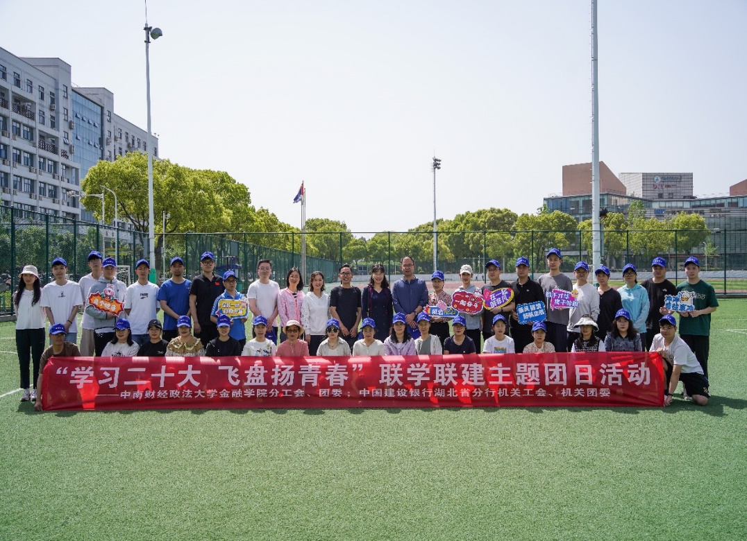 新闻网讯(通讯员 胡源 摄影 吴彦恺)为学习贯彻落实党的二十大精神,推进全方位校企合作交流,发挥团组织“引领青年、服务青年、凝聚青年”的作用,4月15日下午,中南财经政法大学金融学院联合中国建设银行湖北省分行机关在中南大南湖校区环湖体育场开展“学习二十大 飞盘扬青春”联学联建主题团日活动,双方的青年代表参加了本次活动。金融学院党委副书记向敏和中国建设银行湖北省分行团委书记武辰阳为本次活动致辞。