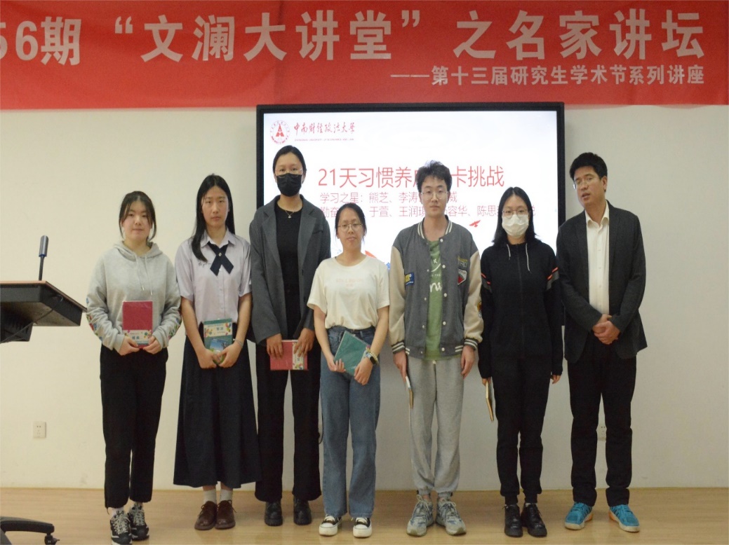 活动最后,学生办公室主任余利老师为“学风建设月”21天习惯养成打卡挑战“学习之星”、“勤奋之星”和先进个人颁奖并合影留念.