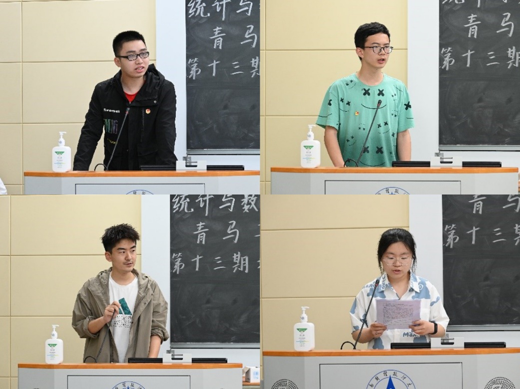 陈君阳学员回忆开课仪式上王瑄书记提出的期望:“以梦为马,与中国梦合流、与时代梦交汇”,决心争做“有理想、敢担当、能吃苦、肯奋斗”的时代新人;孙亭亭学员在青马班组织的古今交错的实践活动中认识到无论多么先进的技术也只是当时的强盛,以后的道路将由新时代青年继续开拓;刘琳涵学员着眼于对立统一视角回望整个青马历程,从哲学维度感悟了无论在什么领域,任何事物以及事物内部以及事物之间都包含着矛盾,而矛盾双方的统一与斗争,推动着事物的运动、变化和发展;邹鑫美学员借诗句“追风赶月莫停留,平芜尽处是春山”描述青马感悟,勉励自己追求目标的时候,千万不要停留,即便与目标还有重重阻碍,努力终有回报,春山就在平芜的尽头;阙理硕学员从加入青马班的原因开始思考,在帕斯卡尔的‘人是一棵有思想的苇草’中找到了答案,她在青马班积极开拓思想,感悟时代责任。