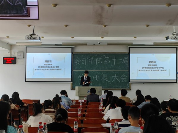 新闻网讯(学生通讯员 许铭凌)5月18日下午三点,中南财经政法大学会计学院第十一次学生代表大会在文波楼211顺利召开,会计学院团委书记赵达骋、校学生会执行主席张栩源、法学院学生会执行主席穆楚歌、金融学院学生会执行主席陈宇肖、会计学院学生会主席团岳馨语、苗书源、刘昊然和76名学生代表出席会议。