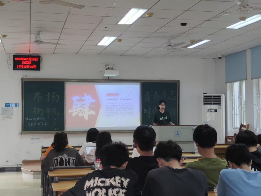 新闻网讯(学生通讯员 杨博雅 蔡继芸)为学习习近平总书记寄语中的深刻含义,以新闻阅读、学习交流会、主题微团课等形式深学细悟习近平总书记回信的精神内涵,在奋斗中磨炼本领、在实践中锤炼品质,担当起“强国有我”的历史使命,谱写绚丽的青春华章,管工2201团支部于5月18日下午四时在文润楼101教室以线下会议的形式开展了以“昂扬青春斗志 扬帆时代征程”为主题的团日活动。