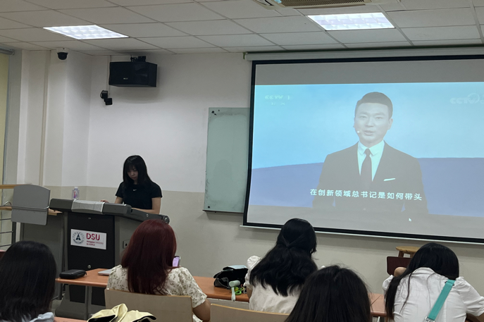 在视频学习环节,《平语近人》第二季第七集——“自强不息日日新”的选段中,主持人康辉与经典释译人康震教授讲解了“周虽旧邦,其命维新”、“苟日新,日日新,又日新”、“天行健,君子以自前不息”等典故,鼓励并倡导同学们继承和弘扬中华民族的创新精神,以古代圣贤为榜样,不断地创新,为实现中华民族伟大复兴的中国梦而不懈奋斗。同学们认识到,创新,是深深镌刻在我们骨骼中的伟大基因,是流淌在我们血液中的蓬勃生机,是中华民族自古以来最重要的精神禀赋;时代发展呼唤创新,社会进步追求创新,民族复兴渴望创新;作为中华民族新时代新青年,我们肩上承担着一代代先贤前辈们的深厚期望,理应贯彻习近平总书记的“青年观”思想砥砺前行。
