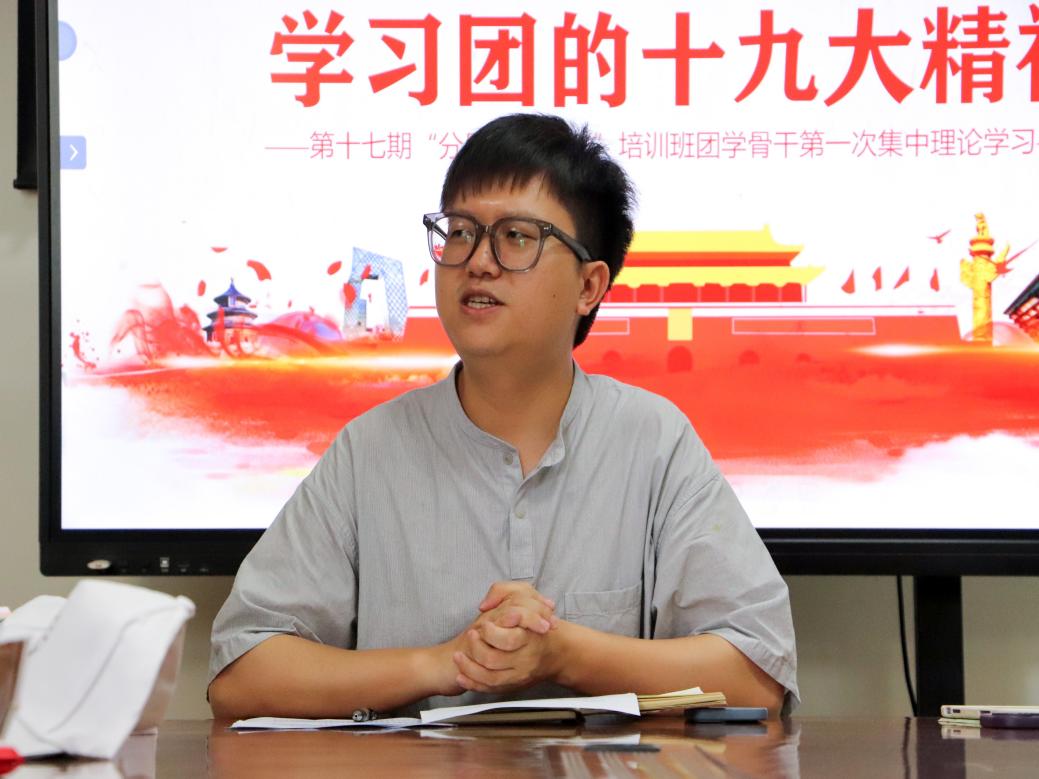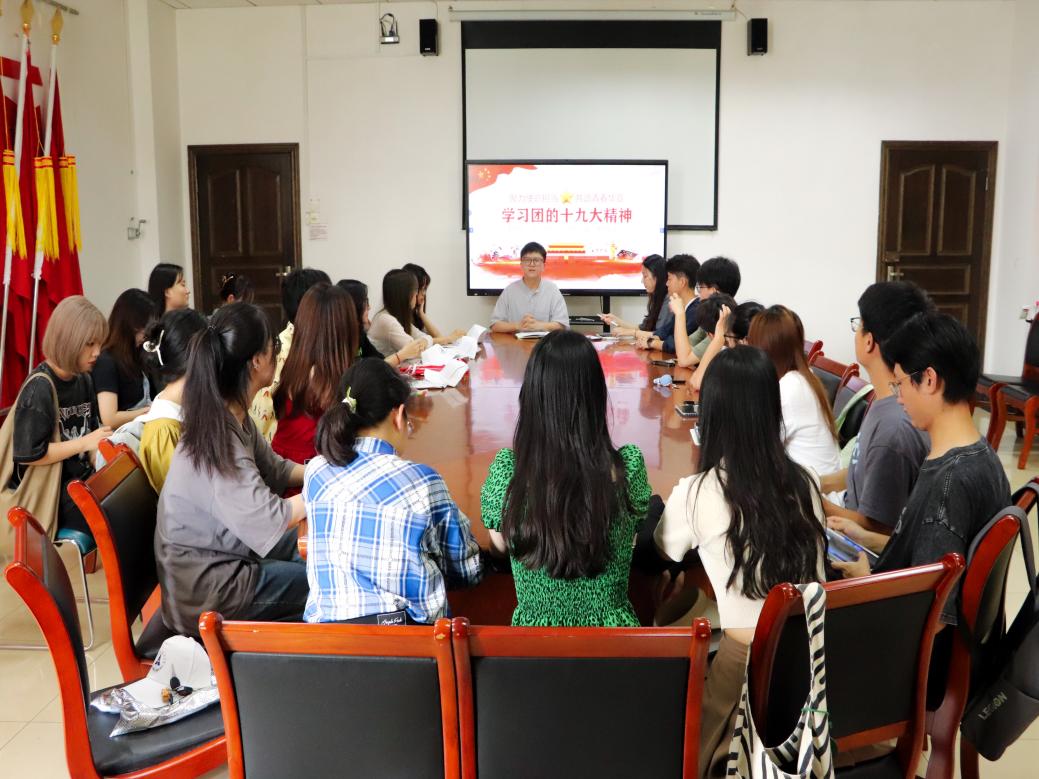 新闻网讯(学生通讯员 黄叶晴 李娟宇)6月28日下午,工商管理学院在文泉北307召开团的十九大精神专题学习会议,学院分团委各部门团学骨干参会学习,21级辅导员杨思琦老师出席会议,分团委书记何强老师主持会议。