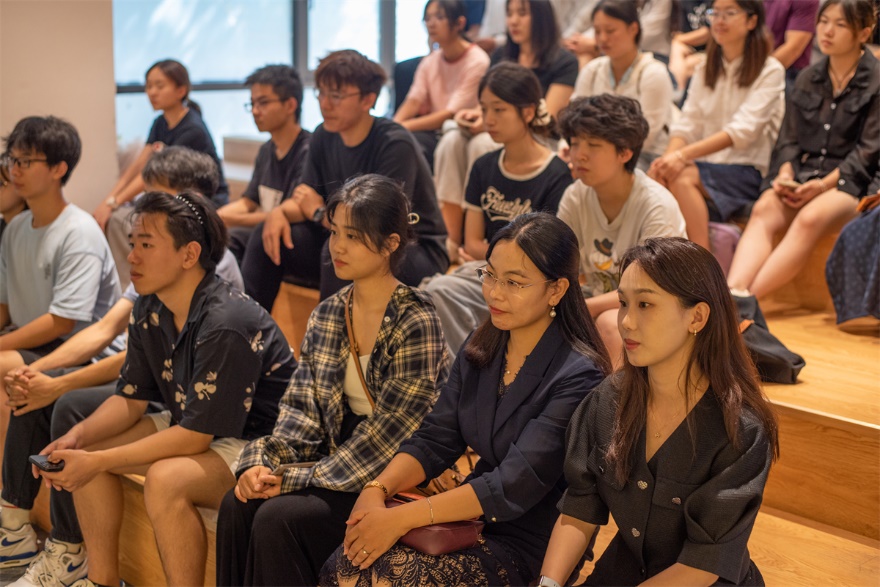 林小草老师分享了自己作为歌者和音乐制作人,多年来从事的中国传统音乐保护工作、田野录音趣闻铁事、古歌创作案例、古歌舞台呈现。在传承和创新之间,林小草老师不断寻求突破,通过各种方式将那些纯净土地里生长出来的歌曲带到世人面前。聆听了一段又一段的古歌,同学们对传统音乐有了更进一步的认识,深刻理解了弘扬传统文化的重要性。