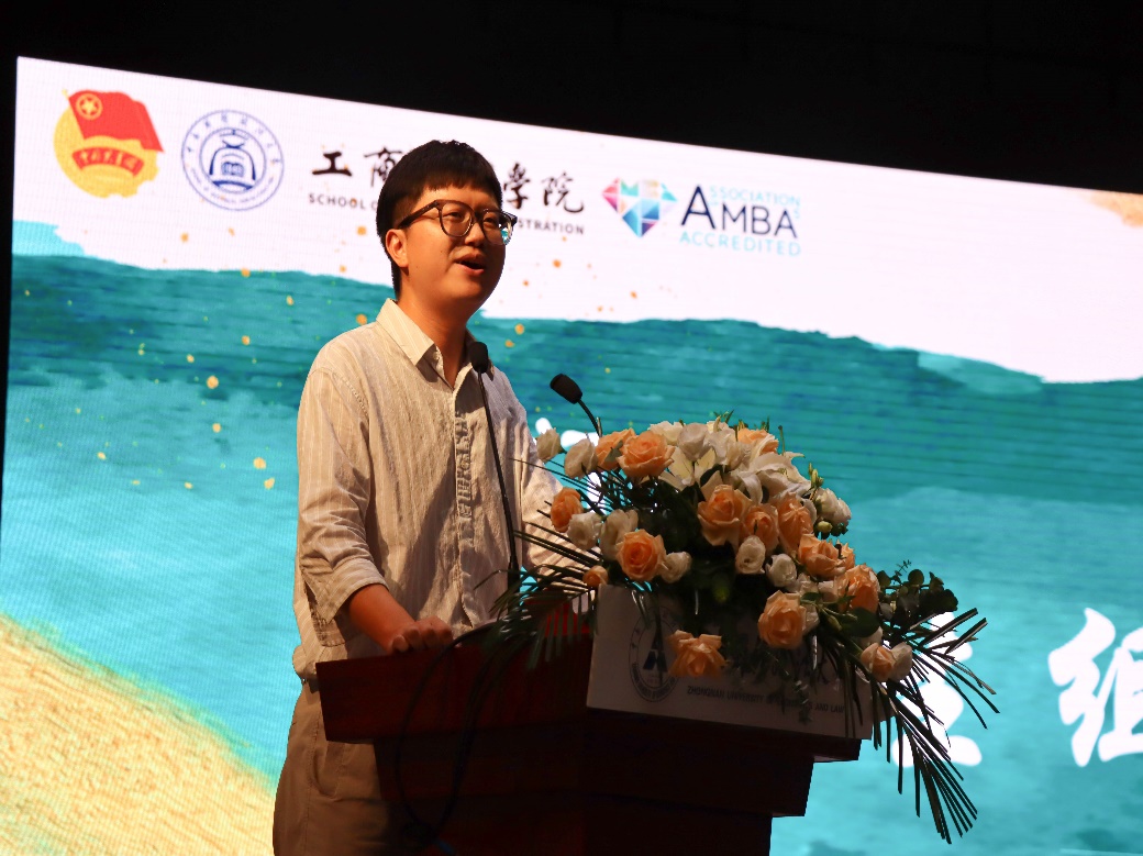 宣讲会伊始,何强老师对来到工商管理学院的新同学们表示热烈的欢迎和祝贺。他从大学的五大职能出发,为新生们分析了团学思政工作与学生部门的重要性。何老师指出,我院分团委、学生会与志愿者协会各具特色又团结统一,大学四年间在科研竞赛、生活服务、文体活动、志愿服务等方面为同学们提供了广阔平台。经过多年的发展,团学志不仅在学生工作中方面取得了丰硕成就,也培养了一批能力出众的学生干部。每年都有许多同学在加入团学组织后综合能力得到全面提升,何老师也号召各位新同学要从师兄师姐身上汲取榜样的力量,争取在团学组织中发光发热,努力展现自我风采。他最后表示,各位同学应积极响应习近平总书记关于青年工作的重要论述,以我院团学志为契机,在学生工作中充实生活、发展自我,成为有理想、敢担当、能吃苦、肯奋斗的新时代好青年。