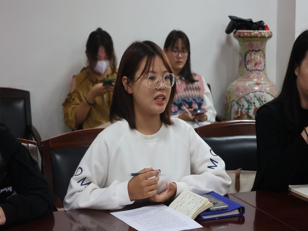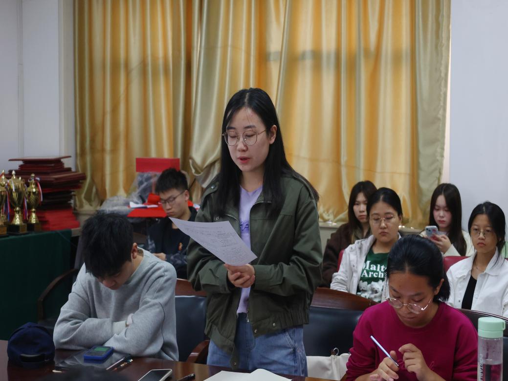 会议第四项,由学生会主席张怡分享成员培养经验。首先,她提到负责人要明晰身份定位,在工作中保持认真严肃的态度,做到话语坚定、命令有效、工作高效。其次,要耐心培养成员的工作技能,提升成员的主人翁意识、部门认同感。接着,她表示要适时表达期待与鼓励,给予成员成长空间。最后,希望可以通过团学志组织搭建起不同年级的沟通平台,分享成长经验,积极反馈问题、解决问题。