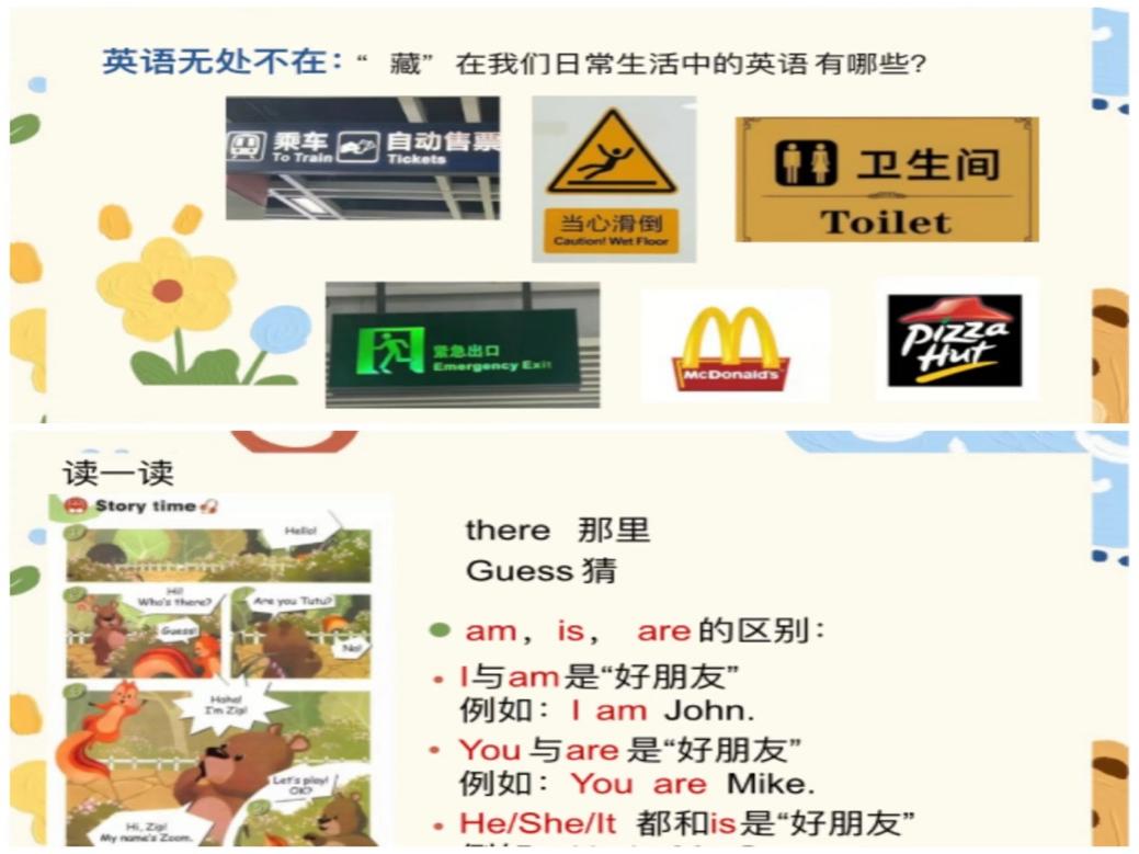 首次授课目的在于激发学生学习英语的兴趣,具体教学内容分为两个部分:第一部分是通过交流问答、教学英文歌曲、热身练习活动等环节帮助学生认识英语学习的意义;第二部分是基础的英语语法知识和发音练习,包括打招呼英文用语、学习外国人名命名规则、设计自己的英文名等内容。为提高学生线上学习积极性、保证线上教学效果,志愿者积极尝试“实战”互动游戏等灵活多样的线上教学形式,让学生在趣味性教学中巩固相关语法知识。