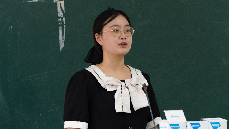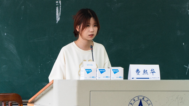费熙华以新闻采写为主题,从采写前准备、采写内容要求两方面,对新闻写作的事前准备和写作注意事项进行了详尽的介绍。她表示,会前需要提前在学校官网搜索目标事件的采写风格,熟悉嘉宾名单;会中需要进行录音,做好记录;会后写作需要注意标题、导语、遣词造句符合规范,文风客观,表达得体,以认真严谨的态度产出优良的稿件。