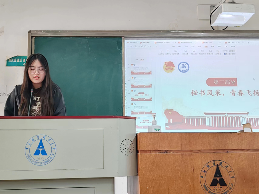 “团学联合,青春飞扬”。宣传中心采编部许铭凌系统介绍了团日活动中新闻稿的撰写和投稿要求,学生会秘书处张筱悦则重点介绍月度考核报告中奖项收集事宜。