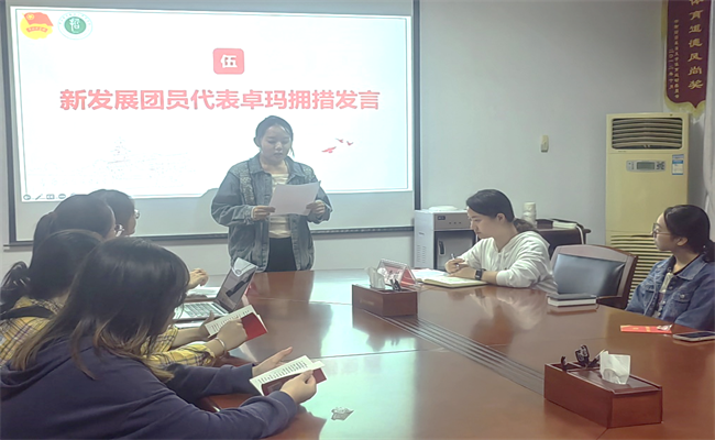 国际政治2022班卓玛拥措同学作为新发展团员代表发表感言。卓玛拥措同学表示壮志欲凌云,立足当实地,号召各位新发展团员在团组织的带领下,脚踏实地,虚心学习,积累智慧,不断进取,以共青团员的标准严格要求自己,真正践行自己的入团誓词。