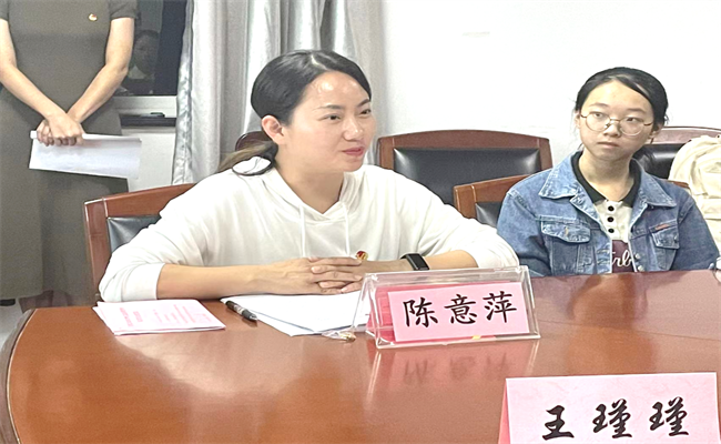 最后,院团委书记陈意萍老师进行了总结发言,她对新团员们表示热烈的祝贺。陈老师强调了成为一名共青团员的意义和责任,勉励新团员们牢记自己的承诺,在未来的日子里以实际行动践行入团誓词,传承共青团优良传统,在团组织的大家庭中,继往开来,共同追求青春梦想。