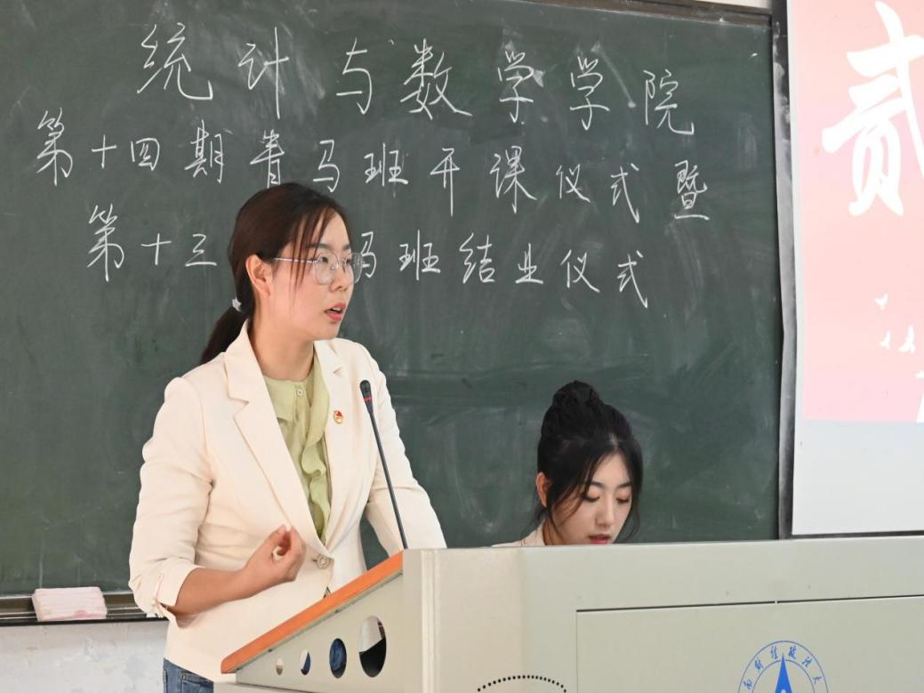 新闻网讯(学生通讯员 杨姝煜 熊吉祥)10月28日,统计与数学学院第十四期青马工程培训班开课仪式暨第十三期青马工程培训班结业仪式活动于文澜207顺利举办。院团委书记、23级本科生辅导员陈盈老师,第24届研支团成员苏正民及团学骨干团成员高庭萱、王秀宇、陈怡霖、张怡作为嘉宾出席本次活动,第十三期青马工程培训班优秀学员和结业学员代表,十四期青马工程培训班全体成员及2022级新发展团员共69人参加学习。