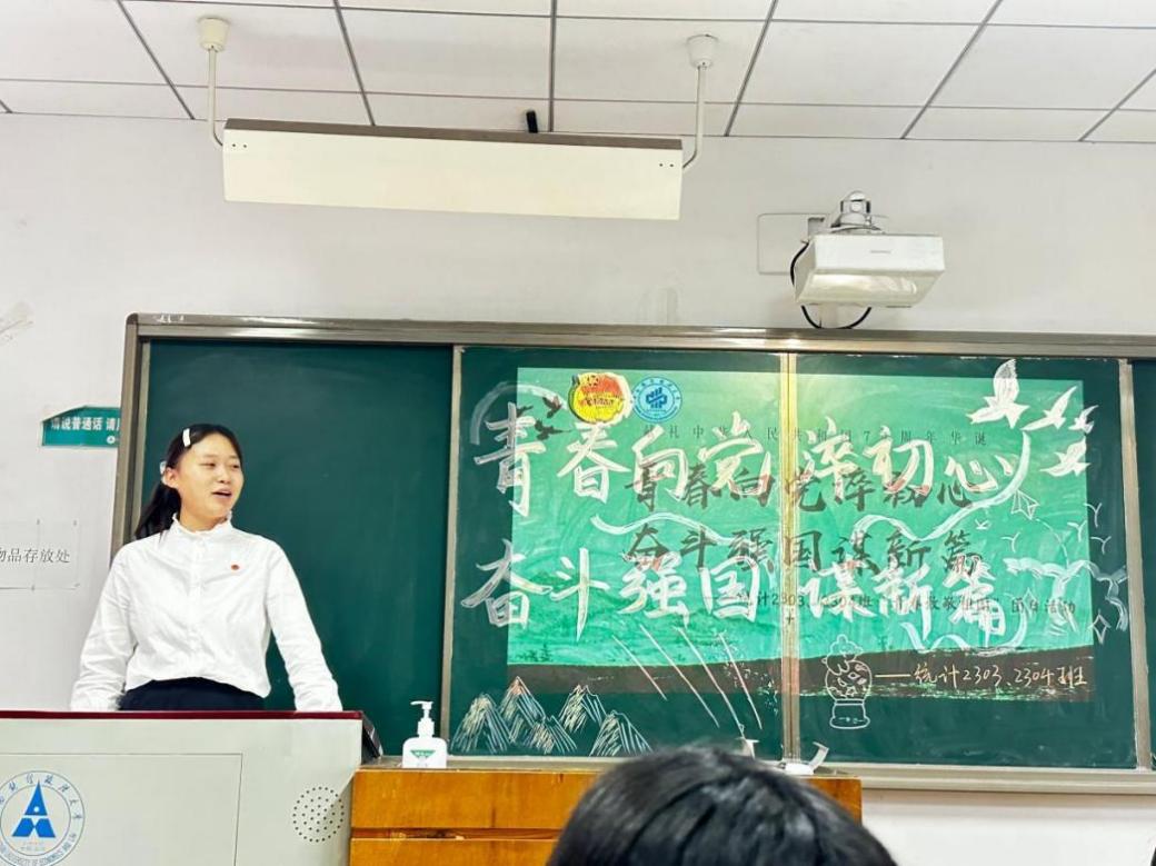 新闻网讯(学生通讯员 周雨希 孙皓月)为深入学习贯彻习近平新时代中国特色社会主义思想,拉近当代青年与党的距离、加强对党的重要思想的理解、充分认识到需提高专业素养来实现中华民族伟大复兴,10月20日,统计与数学学院统计2303和统计2304团支部于文泽212教室开展以“青春向党淬初心,奋斗强国谋新篇”为主题的团日活动。Pygeek协会负责人应邀出席,本次活动由统计2304班团支书主持。