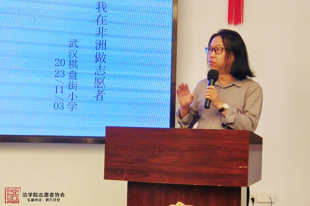会中,主讲人江汉大学张武宜博士以“我在非洲做志愿者”的多彩经历作为切入点,在分享加纳风土人情与自己任教经历的同时,引导观众们思考当今社会我们该如何理解志愿者工作。张博士表示,志愿工作是身边之事、平常之事与终身之事。因此,在开展志愿工作时,志愿者需始终保持谦卑之心,学习之志,始终用包容和尊重的眼光关注形形色色的人们,关注由人们的存在而构成的多元世界。