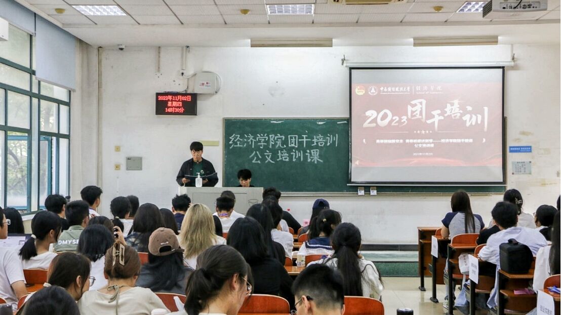 新闻网讯(学生通讯员 龚美晨 陈思婕)为提高经济学院分团委学生会(以下简称“团学”)新成员的工作能力和综合素质,培养有本领、有担当的时代青年,经济学院“高举团旗跟党走 青春砥砺进新芽”团干培训第三课—公文培训课于11月2日下午在我校南湖校区文波楼207教室举行。经济学院团委书记陈远瞻担任主讲人,2022级与2023级全体团学成员到场参加培训。