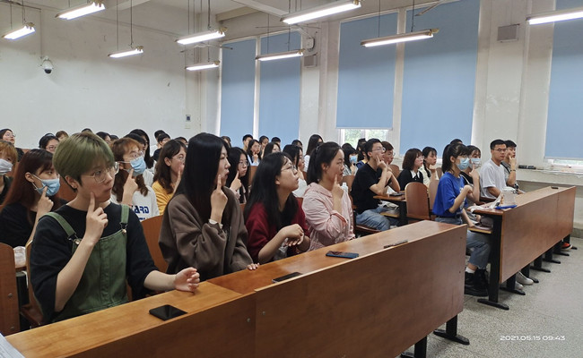 新闻网讯(学生通讯员 晁馨茹)10月29日,哲学院志愿者协会与爱无声手语协会在文澜楼407教室联合开展“手之言,心相约,梦闪耀”主题志愿服务活动,手语演绎歌曲以激励聋哑学生、推动构建无障碍交流环境。100名志愿者参加了本次活动。