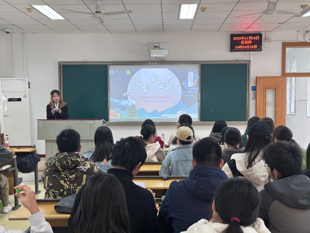本次决赛共有三个部分:第一部分为寝室风采展示环节,由各寝室分别展示PPT和进行才艺展示,第二部分为趣味问答环节,选手和观众皆可抢答传统文化相关常识问题,第三部分为颁奖环节,何强老师为各获奖寝室颁发荣誉证书并与选手合影留念。