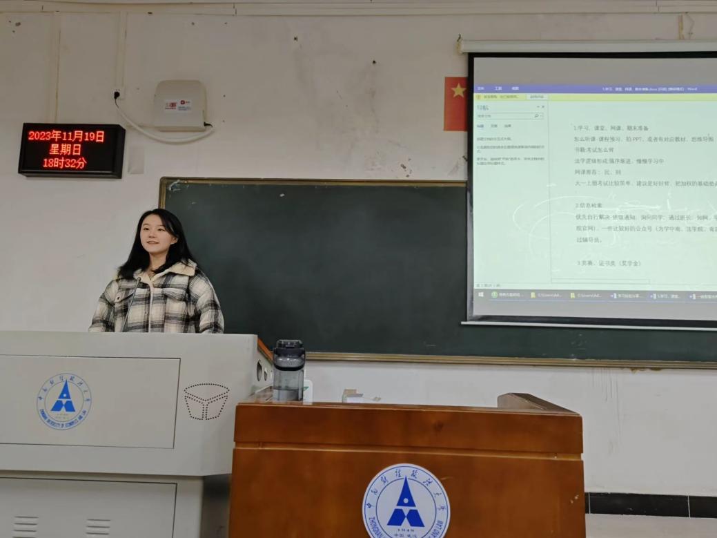 新闻网讯(学生通讯员 李忞殊 屈昭建 蔡思怡 吴添翼 吕鸿宇 曾培珊)怀蒙学之心,过严法之地。刚刚步入大一,法学国际2301班与纪检监察2301班的同学们对大学的学习和生活仍然存有疑虑。为帮助同学们快速适应大学生活、深入了解大学学业、明确未来发展道路和努力方向,两班团支部邀请大法2101班李想师姐、大法2101班冷嘉媛师姐、大法2201班严佳玲师姐和政府法治2101班韦诗怡师姐联合开展“学途送宝,榜样领航”学习经验分享会,为同学们答疑解惑,分享学习经验。