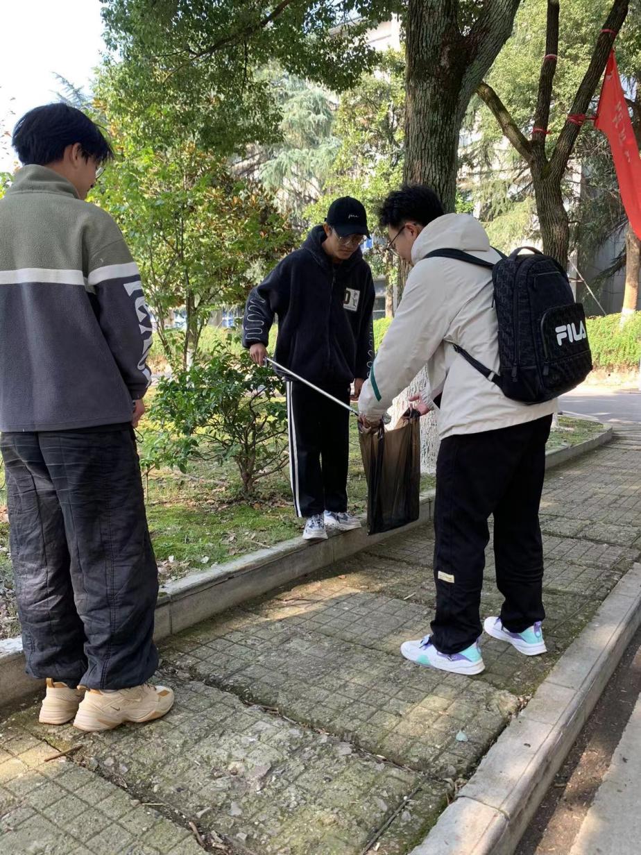 从文治楼出发,志愿者们全身心地投入到工作中。大家分工明确,互相配合。无论是遗落在树下的饮料瓶,或是掩埋在沙土中的纸团,还是散落在过道的包装纸、垃圾袋,志愿者们都没有放过。他们认真细致、一丝不苟地清理校园的每一处角落,即使是夹藏在缝隙中的烟头,也都一一拾起。活动中,志愿者们既高效又优质地完成了清扫工作,展现出了良好的团队合作意识和精益求精的优良作风。