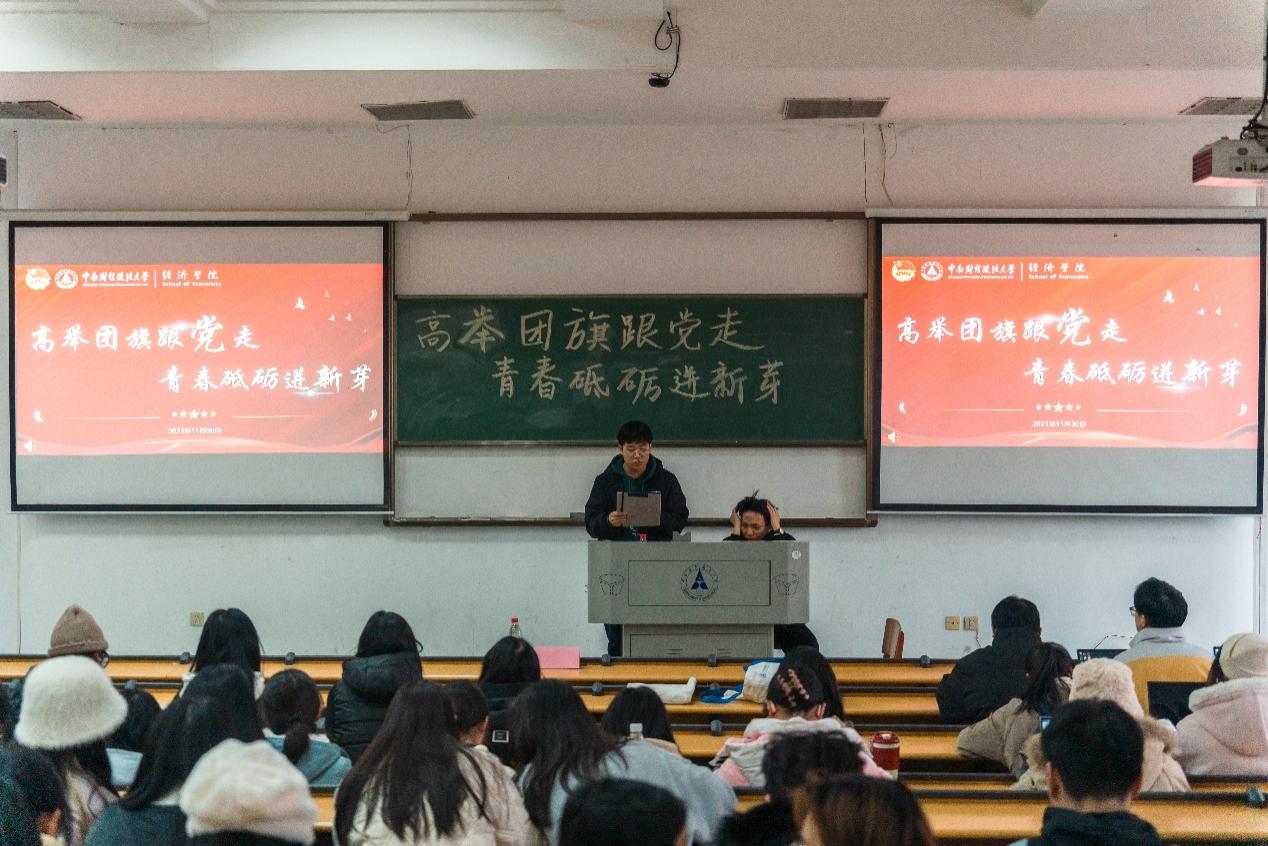新闻网讯(学生通讯员 肖贝贝 何胤良)为了学习宣传贯彻习近平新时代中国特色社会主义思想,引导青年学子踔厉奋发,笃行不怠,经济学院“高举团旗跟党走青春砥砺迸新芽”团干培训第六课于11月30日下午2时30分在首义校区文津楼401室顺利举办。本次培训活动特邀马克思主义学院原副院长朱书刚教授担任主讲人,经济学院2023级全体分团委学生会成员、青苗班学员、青马班学员以及2023级新发展团员到场参加培训。
