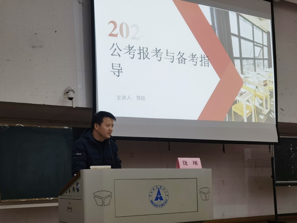 随后,饶翔向同学们详细介绍了考公相关内容。他针对报考与备考两个环节进行分析,纠正了同学们对考公的认识误区,并结合同学们的现实情况提出切实可行的建议。