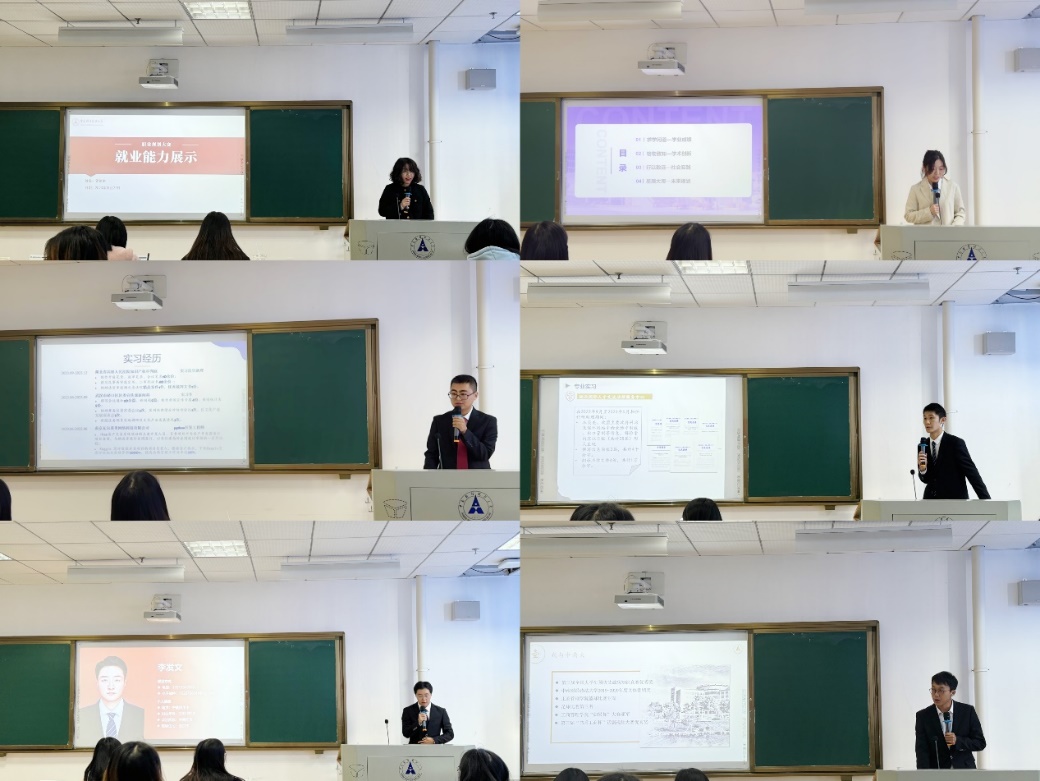 新闻网讯(学生通讯员 楼钟琦 潘敏)11月23日,全国大学生职业规划大赛法律硕士教育中心院赛在文澴楼315成功举行。本次比赛以“筑梦青春志在四方,规划启航职引未来”为主题,旨在增强高校生涯教育和就业指导,增强大学生生涯规划意识,促进毕业生高质量充分就业。进入复赛的优秀选手齐聚一堂,同台竞技,分享自己的职业规划,展现优秀的综合素质。