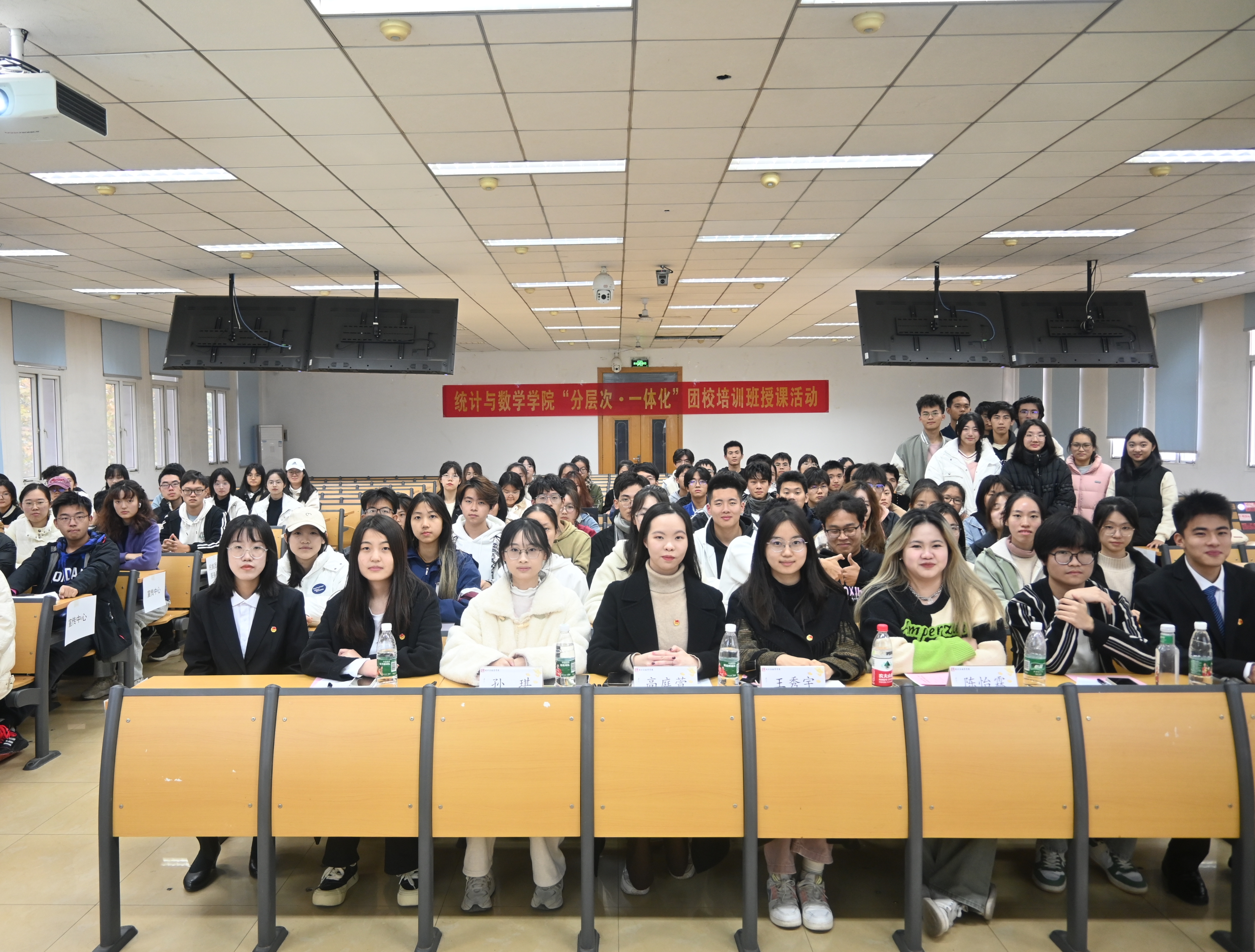 新闻网讯(学生通讯员 熊吉祥 逄雅淇)2023年11月25日,“分层次·一体化”团校培训班第三次授课活动于首义校区文润303教室顺利开展,统计与数学学院第十五届团校骨干团成员高庭萱、王秀宇、孙琪、陈怡霖,宣传中心负责人王雨蒙、李雨琛出席本次活动,团学志组织成员共125人参与学习。