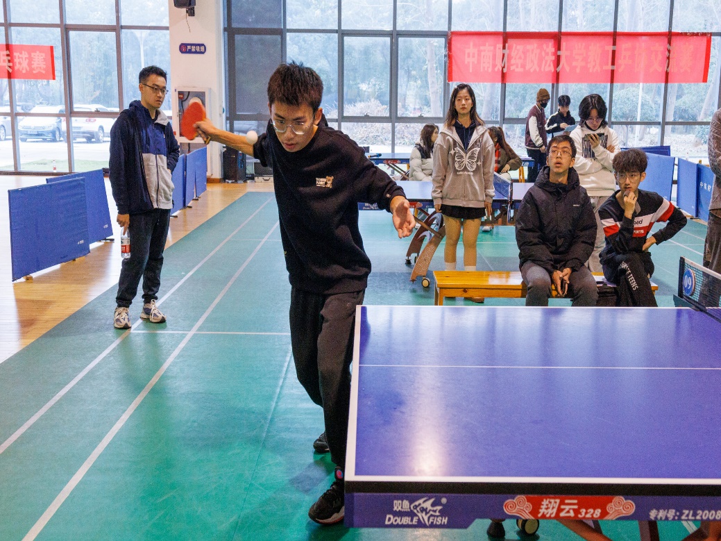 新闻网讯(学生通讯员 高旗)强学子体魄,展学院风采,中南财经政法大学金融学院第二届“揽月杯”乒乓球院赛于2023年11月26日在南湖校区小球馆进行,本次比赛包括男单、女单、男双、女双、混双五个项目,各年级的同学共同来到南湖校区参与本次比赛。