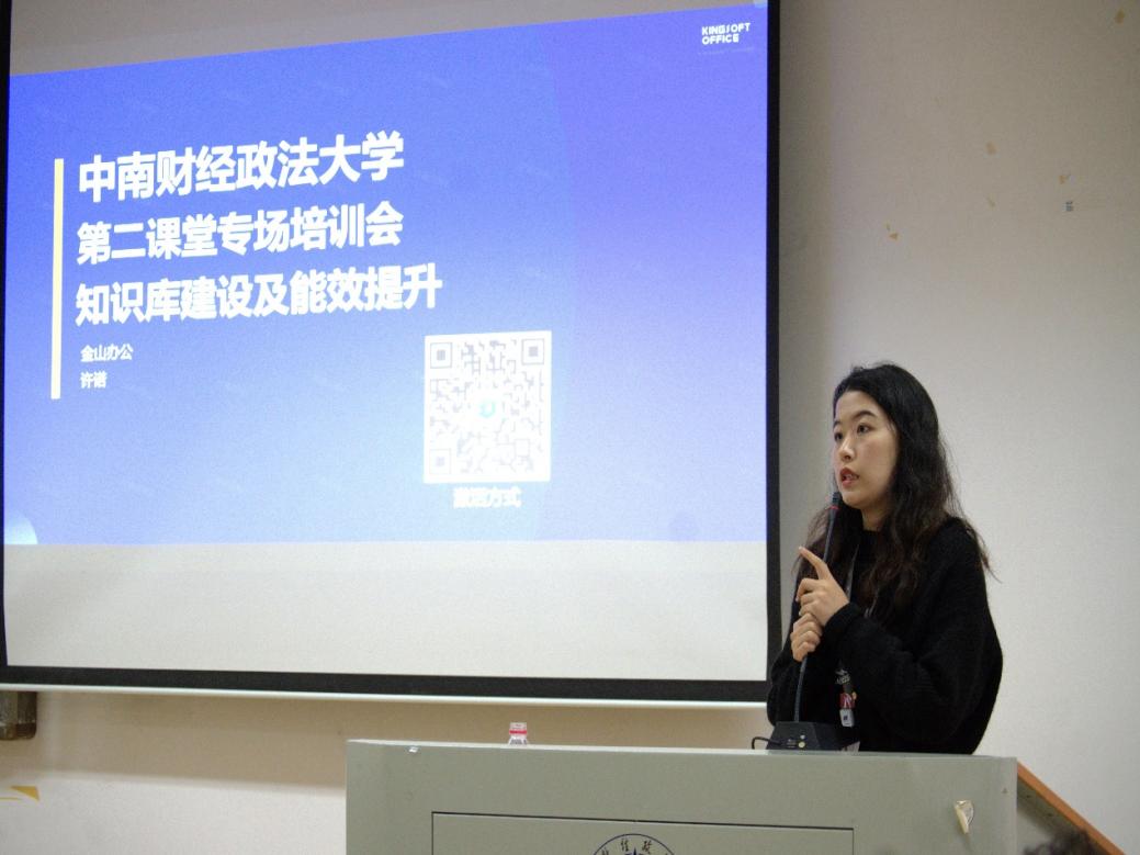 活动第一项,嘉宾授课。许诺从WPS office与金山文档的异同、WPS的功能板块、AI办公方法等方面对WPS进行全面的讲解,并示范了如何进行多人协作办公,用实例操作让同学们对WPS办公软件的高效使用有了更为深入的了解。