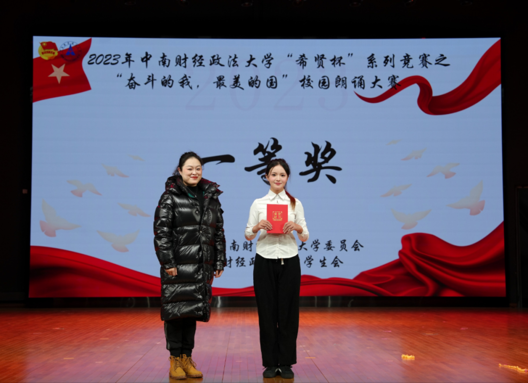 最终,法学院主持团带来的朗诵作品《那只钢笔》赢得了全场雷鸣般的掌声,以95分的优异成绩斩获朗诵大赛的第一名。