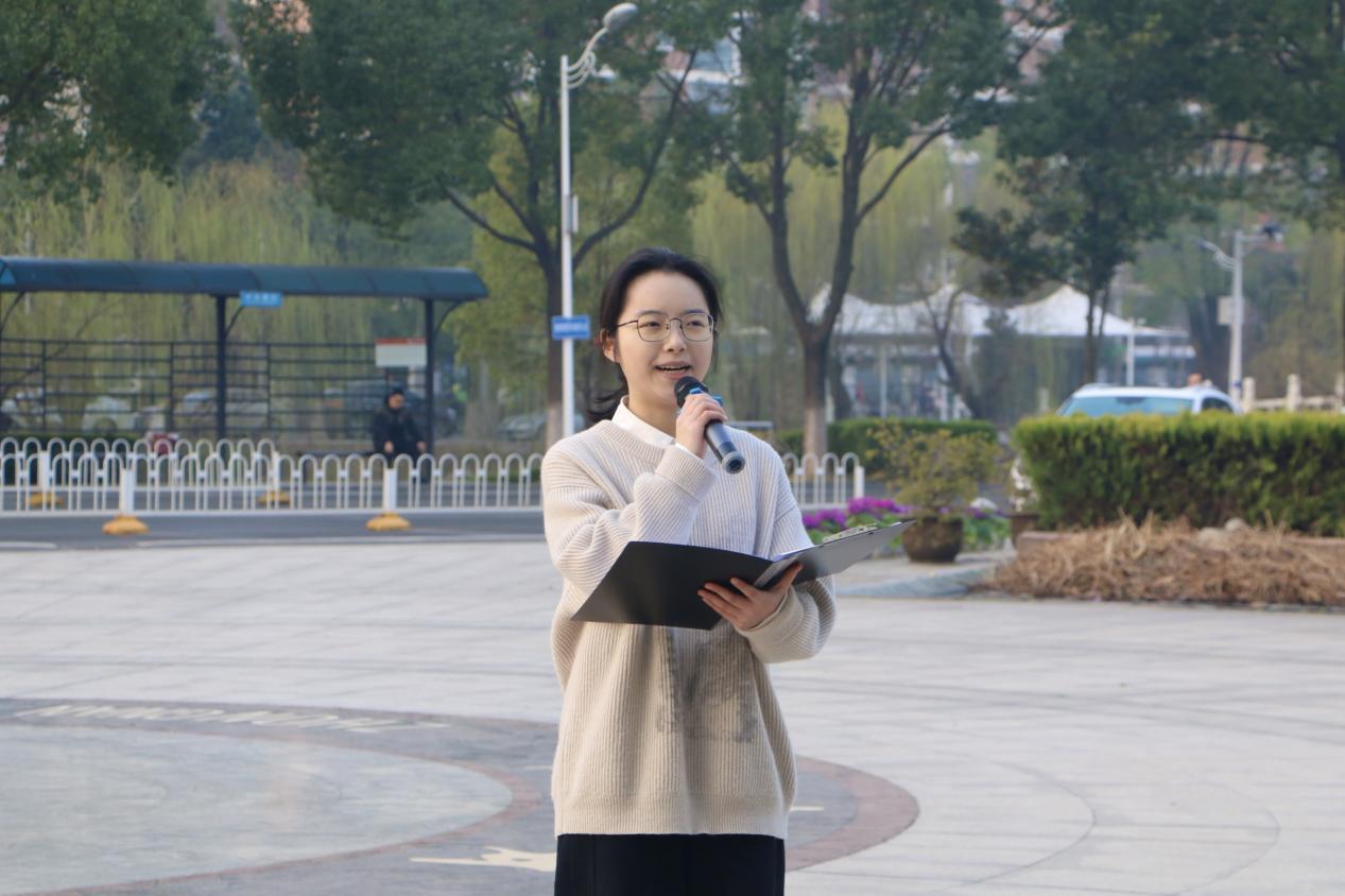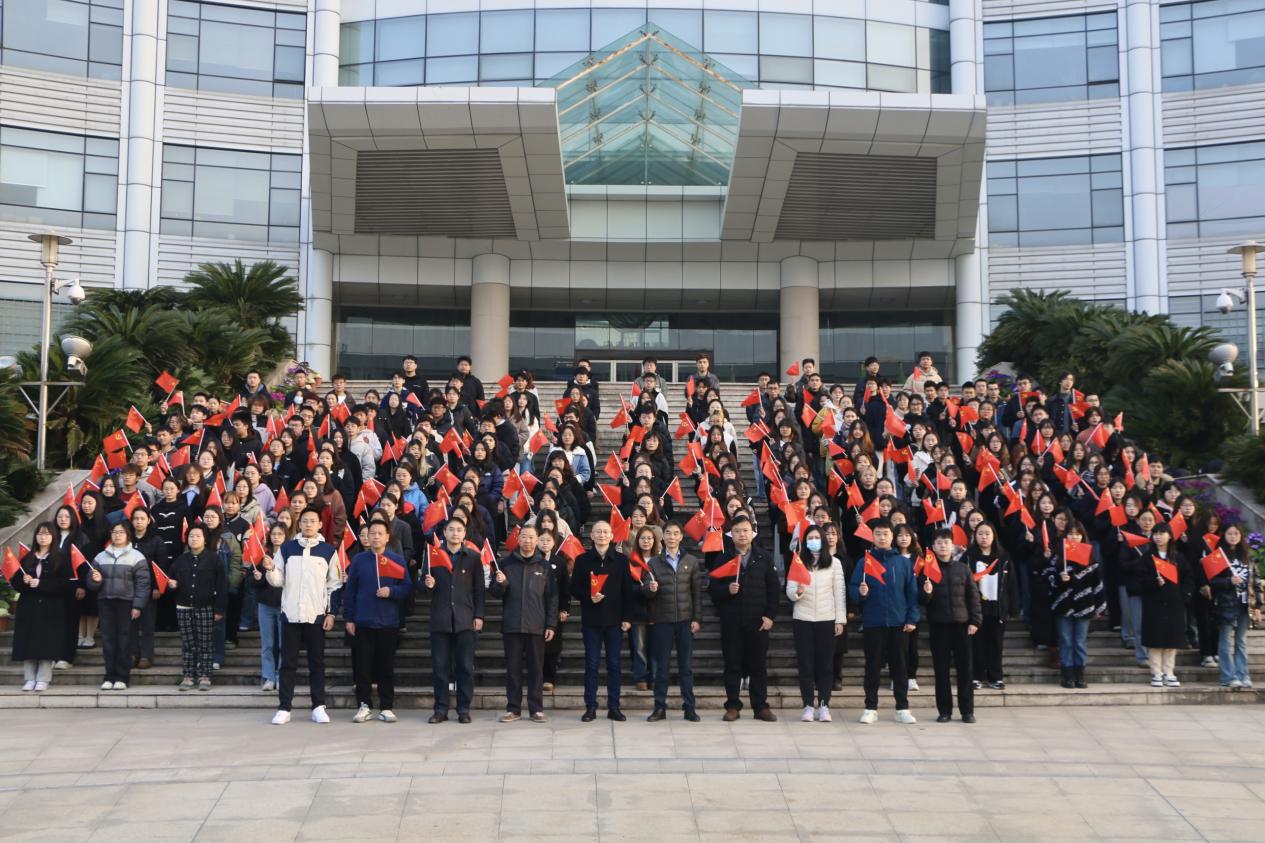 黎明破晓之际,师生们严格遵循时间约定,齐集于中原楼广场整队排列,个个神采奕奕,气氛庄重而肃穆。随着东方地平线上的旭日初升,国旗护卫队队员们昂首阔步,步伐坚定有力,以无比庄重的姿态护送五星红旗步入广场中央。在那激昂高亢、响彻云霄的国歌声中,鲜艳夺目的五星红旗随风招展,缓缓升起,宛如红日东升,昭示着新的开始。全场师生庄重伫立,面朝那面神圣的国旗,目光专注而深情,内心充满对祖国无尽的热爱与崇高敬意。