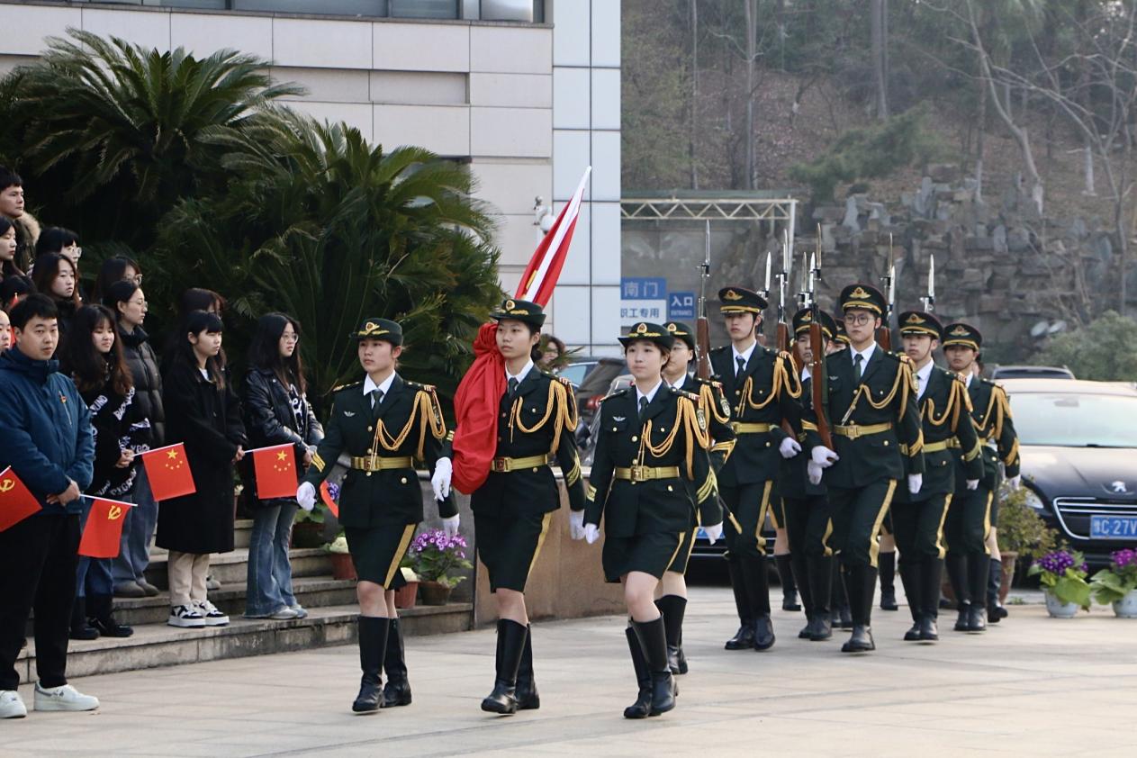 新闻网讯(通讯员 王康 学生通讯员 苏姣榕 卢果 陈雨)3月11日清晨7时整,公共管理学院于南湖校区中原楼广场庄严举行了以“砥砺奋进新时代,扬帆启航新征程”为主题的升旗仪式。公共管理学院院长张广科、院党委副书记刘茂盛、副院长田艳平、副院长熊卫、副院长田进,党政办公室副主任向双申、党务秘书王海军、全体本科生辅导员和近200名学生代表齐聚现场,共同参与并见证了这一庄重而热烈的升旗仪式。