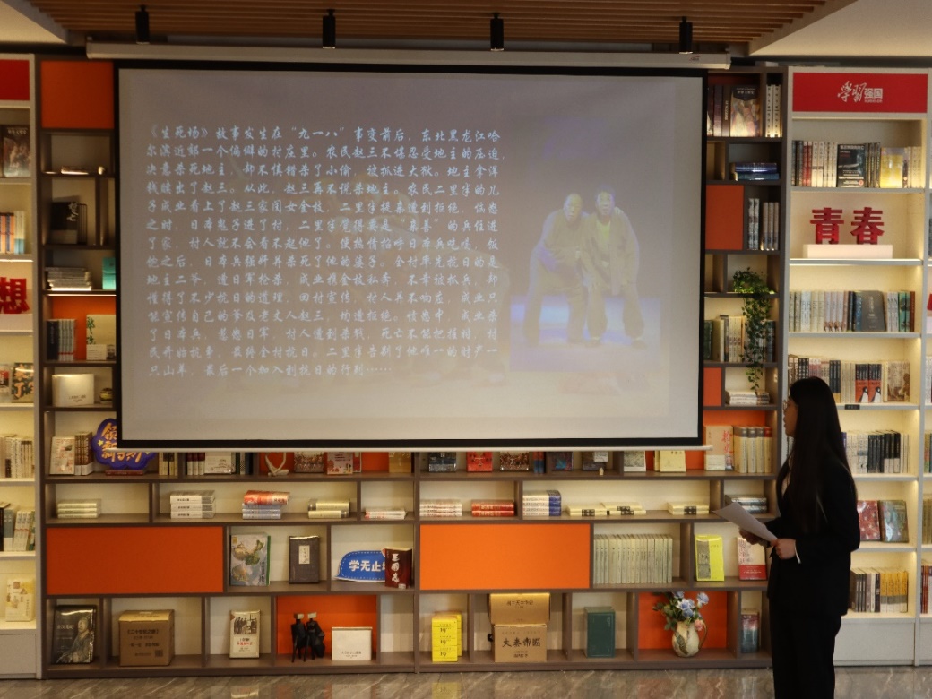 活动第一环节——万卷共知。主持人简要介绍了《生死场》的故事背景及书中人物,这部作品以细腻的笔触描绘了封建势力压迫下农民们的悲惨生活,展现了他们在生与死之间的挣扎与抗争。接着,大家共同观看了由田沁鑫导演的《生死场》电影。光与影的精妙组合,独特的镜头语言,富于变化的艺术手法,将故事演绎得感人肺腑。