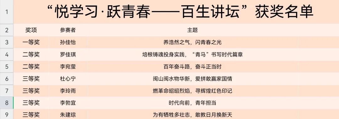 激烈的演讲过后,评委老师对选手的演讲内容及表现进行了评选及审议,最终确定的获奖名单如下: