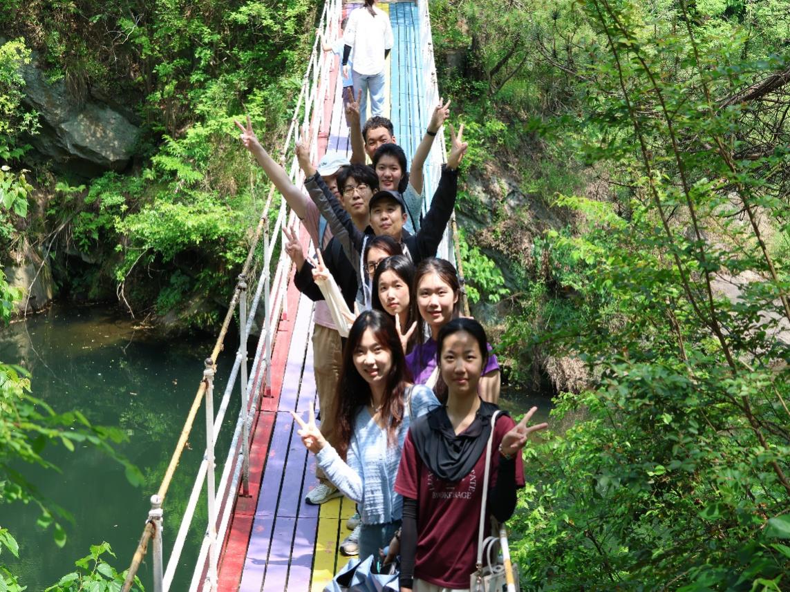 石门锁大别,天池秀木兰。活动开始,张老师简要介绍了景区的地理概况和景区背后的历史文化渊源,叮嘱了安全事项,就带领大家开始欣赏美丽的自然风光。同学们在绚丽的彩虹栈道上合影,新奇地打量着山中独有的虫鸟植被、感受山中清澈冰凉的小溪,每个人都兴致勃勃、乐在其中。