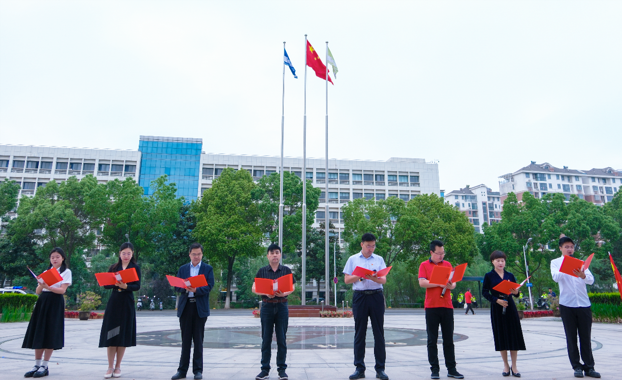 早上7点整,升旗仪式正式开始,国旗护卫队精神抖擞,迈着整齐划一的步伐,将五星红旗护送到升旗台。随着雄伟庄重的国歌响起,五星红旗缓缓升起,随风飘扬,全体师生肃立行礼,高唱国歌。