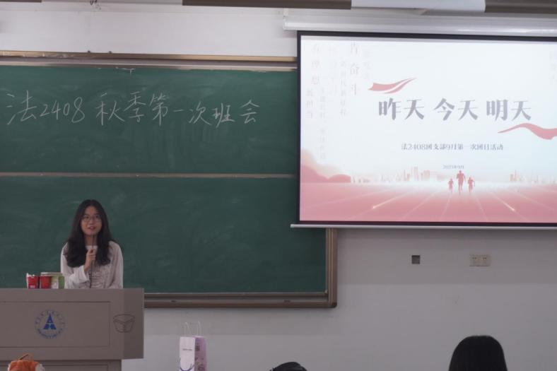 新闻网讯(学生通讯员 浦威)9月18日,法2408班顺利开展本学期第一次主题团日活动暨秋季第一次班会——“昨天·今天·明天”。本次活动通过多种形式,引导团员深刻把握新时代中国青年运动的主题,明确国家发展目标与个人责任,积极为中华民族伟大复兴贡献青春力量。