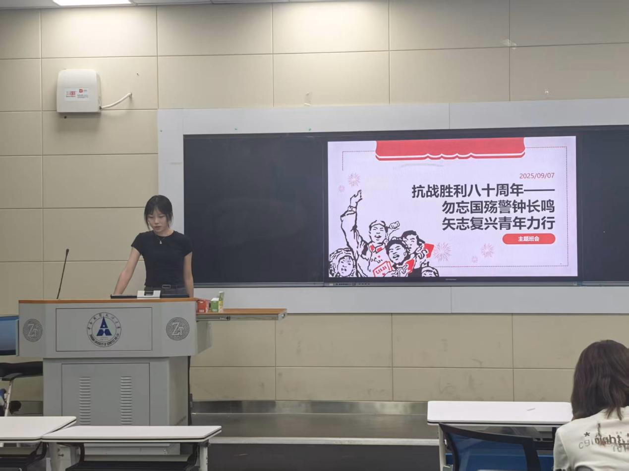 新闻网讯(学生通讯员 浦威)2025年,正值中国人民抗日战争暨世界反法西斯战争胜利80周年。为传承红色基因、赓续抗战精神,法经2401班团支部于9月7日在文波108教室组织了“铭记抗战历史,传承烽火精神”主题团日活动,带领团员青年重温抗战历史,汲取奋进力量。活动由团支书王玉馨主持,法经2401班团支部成员共同参与。