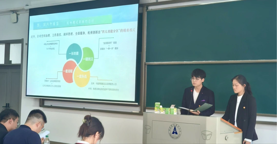 王涵与她的团队围绕无人机物流法律规制展开研究,深入剖析低空经济相关法律问题,为行业规范发展献言献策。熊子慧团队以杭州市为调研地,深入分析“15分钟公共法律服务圈”模式,为全国公共法律服务体系建设提供建议。詹雨柔与她的团队深耕未成年人罪错行为治理领域,深入剖析分级干预体系症结,助力治理机制优化。肖鸣涛与他的团队聚焦环境保护领域,深入探寻水生态价值实现新路径,为美丽中国建设贡献法治智慧。黄鸣语与她的团队以扬州、泰州等地古巷为调研对象,深入探索苏中古巷协同治理路径,为历史街区发展提供方案。