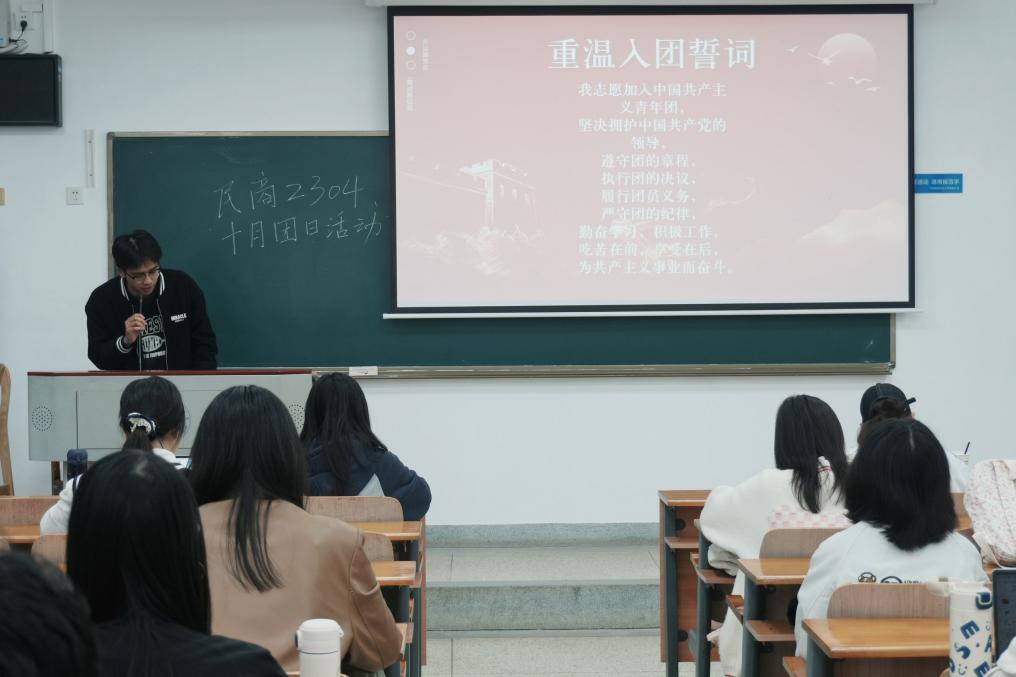新闻网讯(学生通讯员 浦威)山河披锦绣,盛世写华章!在中华人民共和国成立76周年的金秋时节,为深入学习贯彻习近平新时代中国特色社会主义思想,引导共青团员深刻感悟祖国七十余载奋斗征程的辉煌成就,坚定“永远跟党走,奋进新征程”的理想信念,民商2304班团支部于10月28日以“七十六载铸华章,青春逐梦正当时”为主题,开展了一场兼具思想深度与青春温度的团日活动。