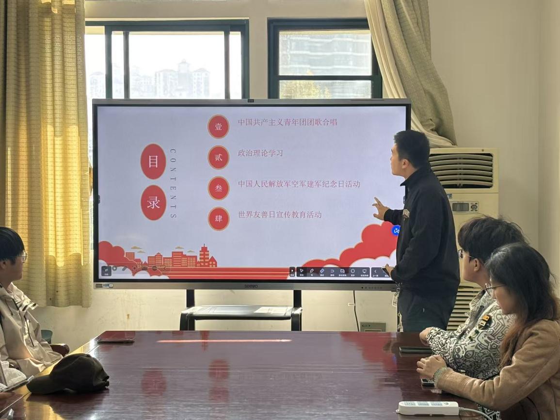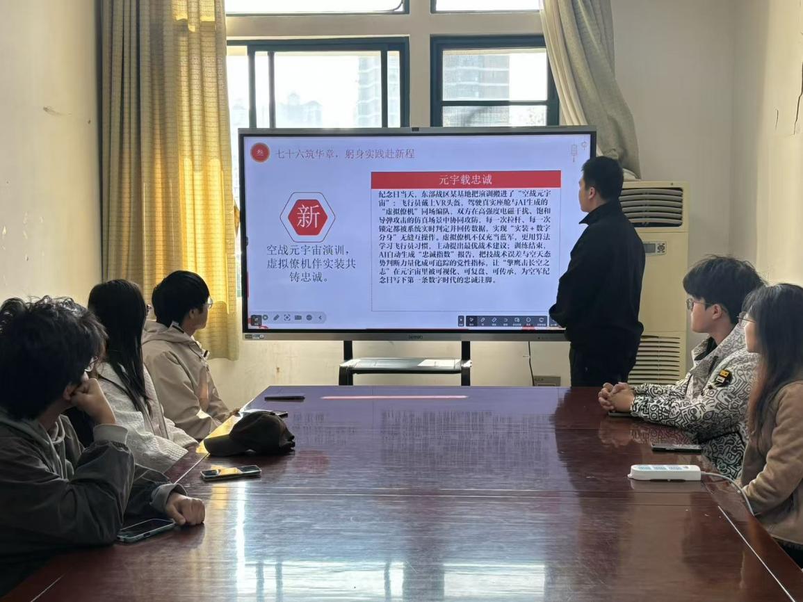 恰逢中国人民解放军空军建军76周年,活动专门设置空军建军纪念日致敬环节。团员们通过史料学习了解空军从1949年成立至今的发展轨迹,从早期的小型阅兵到如今的线上直播、城市灯光秀,从传统演训到“空战元宇宙”的智能升级,深刻体会到人民空军忠诚护国的坚定信念与与时俱进的创新精神。大家纷纷表示,要将空军官兵的忠诚担当融入学习生活,以青春之力守护家国安宁。