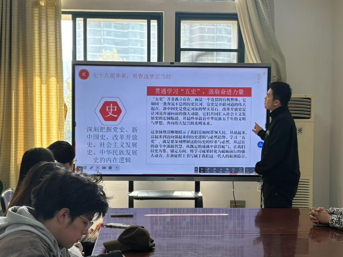 在政治理论学习环节,团员们围绕“五史”贯通学习与人类命运共同体理念展开深入研讨。通过回顾党史、新中国史、改革开放史等波澜壮阔的发展历程,团员们深刻把握历史发展的内在逻辑,从民族复兴的壮阔征程中汲取奋进力量;哈萨克斯坦“中文网红”萨亚的文化交流故事,让大家直观感受“民相亲、心相通”的深远意义,进一步理解构建人类命运共同体的实践价值。