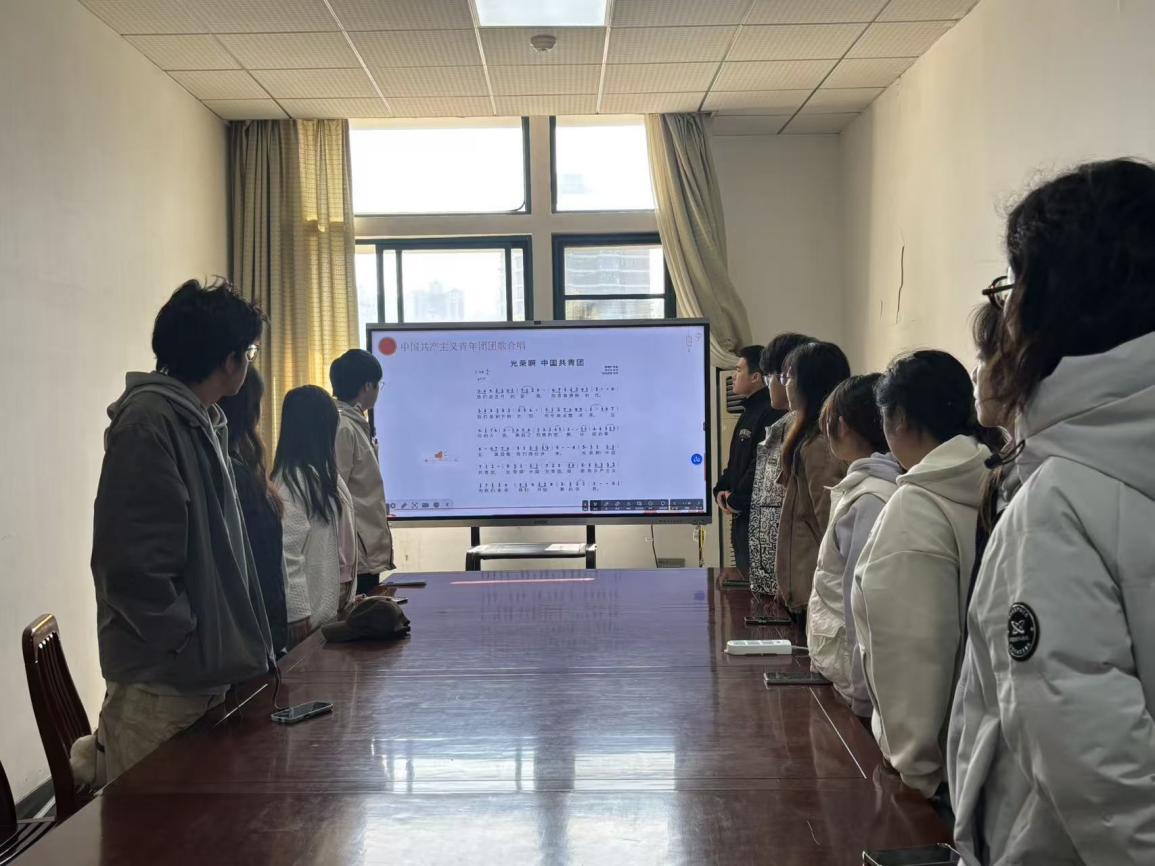 活动伊始,全体团员齐唱《光荣啊,中国共青团》,激昂的旋律回荡会场,凝聚起矢志不渝跟党走的青春共识,拉开了团日活动的序幕。支部成员声音洪亮、情感饱满,旋律和谐统一。该环节不仅增强了青年们的归属感和集体荣誉感,还培养了团队精神,是凝聚人心的重要方式。