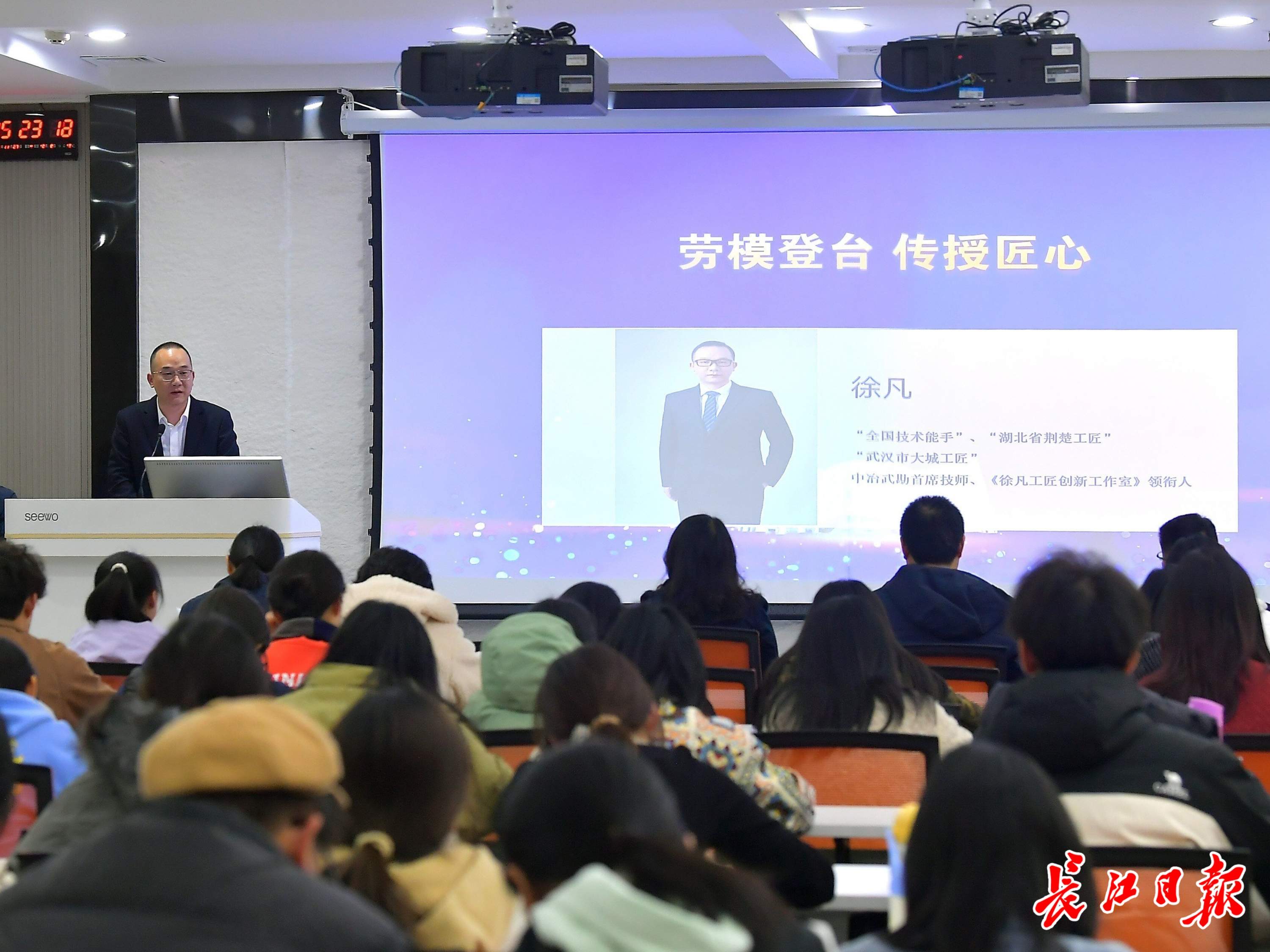 长江日报大武汉客户端11月28日讯(记者刘克取 通讯员贺鹏)“人生的价值,不取决于起点在哪里,而在于你选择用什么样的姿态走完全程。”全国技术能手、中冶武勘首席技师徐凡站在讲台前,讲述他从一名基层派遣工成长为全国技术能手的奋斗历程。11月27日下午,“劳模工匠报告团”走进中南财经政法大学,为工商管理学院120余名学生讲述一场关于坚守、奉献与拼搏的武汉职工“大思政课”。