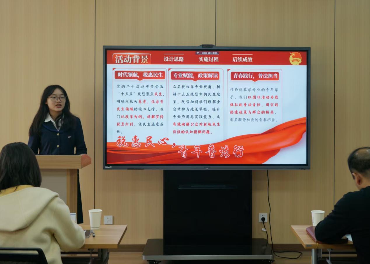 税收2401团支部以“税惠民心,青年普法行”为主题,通过线上宣传、班会研讨及线下社区普法,并采用税法问答、宣传手册发放等创新性活动形式,强化了税收政策与民生的联系。