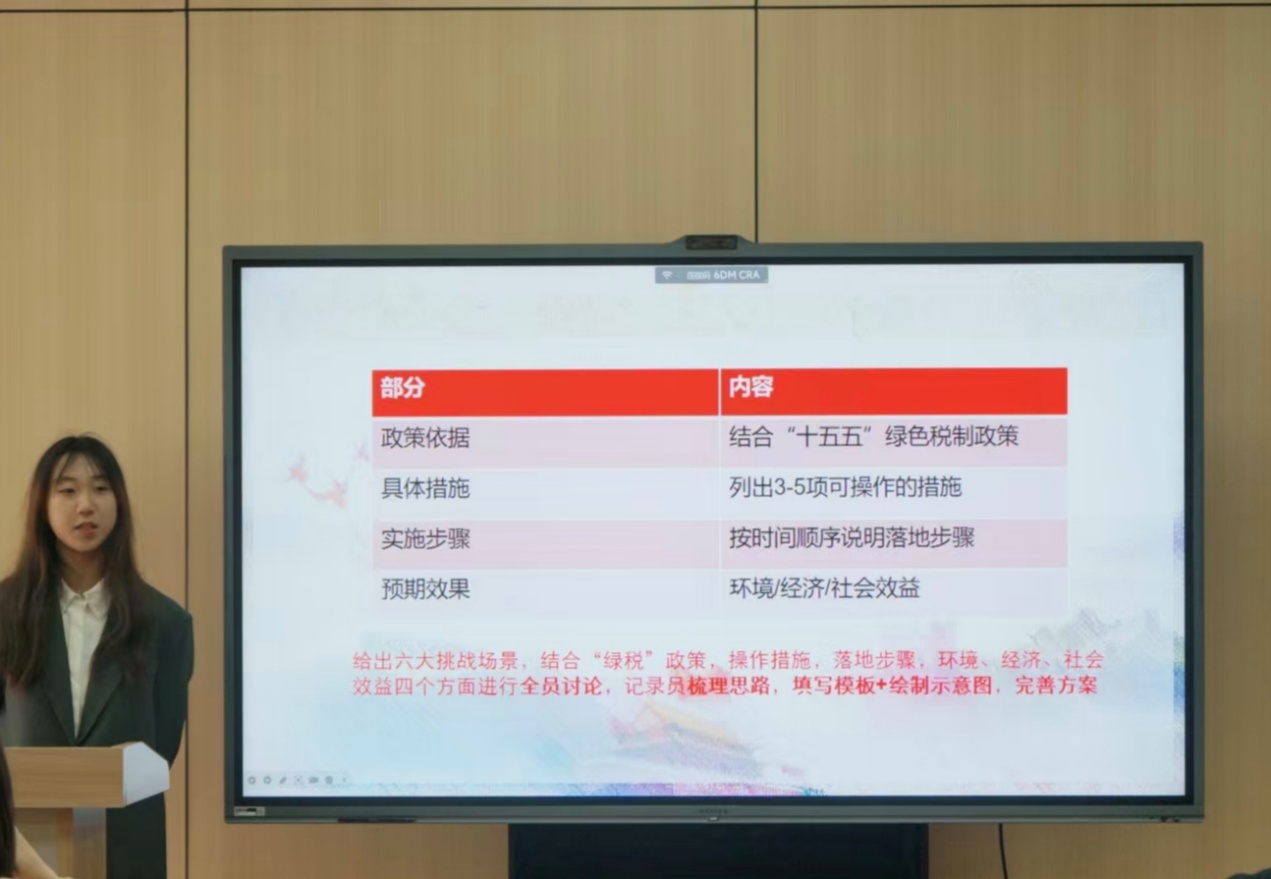 税收2403团支部以“以税聚力绿色发展,以制践行全会精神——新时代绿色税制的创新与探索”为核心,开展政策讲解、案例研讨,如水资源费改税,并开展以企业绿色转型为主题的小组方案设计,生动展现了绿色财税理论与实际应用的有机结合。