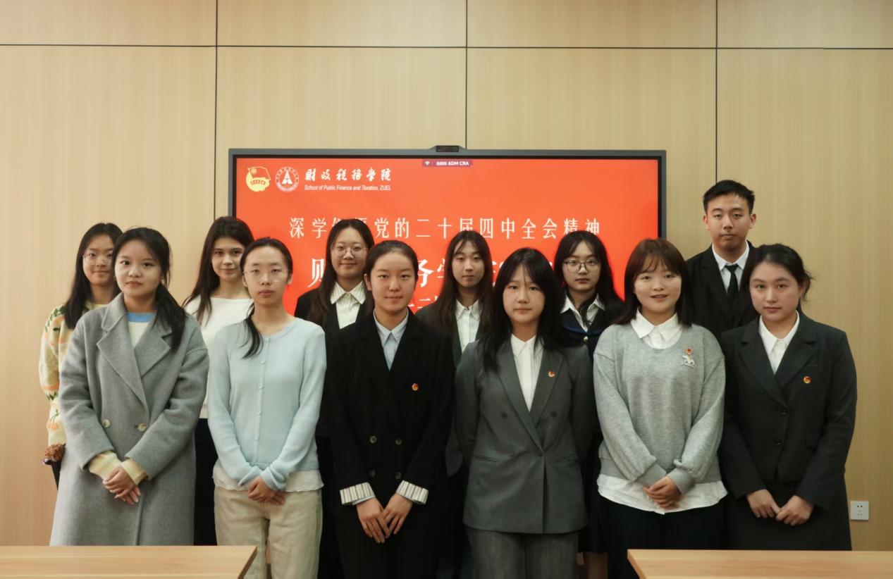 新闻网讯(学生通讯员 宋宛轩 刘欣雨)为深入学习贯彻党的二十届四中全会精神,财政税务学院于12月11日下午在文泉楼北503会议室开展“深学细悟党的二十届四中全会精神”主题团日活动大赛。本次活动评委老师有:财政税务学院学生工作办公室主任、2024级本科生辅导员韩睿子;院团委书记、2022级本科生辅导员木拉提;院团委副书记、研究生辅导员钟唯;2025级本科生辅导员韩鹏,研究生辅导员翟紫薇。