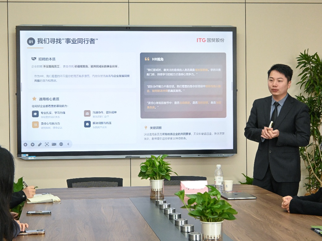 新闻网讯(学生通讯员 张夏菡 徐滢杰)3月10日上午,经济贸易学院在文泉北510会议室开展求职分享会,帮助学生深入了解企业用人标准,科学规划职业生涯。活动特邀厦门国贸集团股份有限公司资深招聘与人力资源管理专家李少焓先生担任主讲,围绕“HR视角下的职场认知与岗位选择”主题,为在场学子带来了一场兼具行业深度与实践温度的精彩分享。