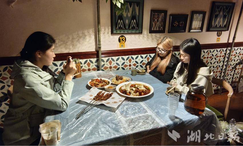 湖北日报客户端讯(通讯员尼加提·艾买提 徐乐 金治太)清晨的武汉曙光星城,烟火气正浓。“玉疆”餐厅里,大盘鸡咕嘟作响,烤包子焦香金黄。餐桌旁,几名身着志愿马甲的大学生手持摄像机,时而用流利普通话与店主交谈,时而用维吾尔语轻声询问。镜头里,是美食的诱人色泽,是店主讲述来汉打拼故事时眼里的光。